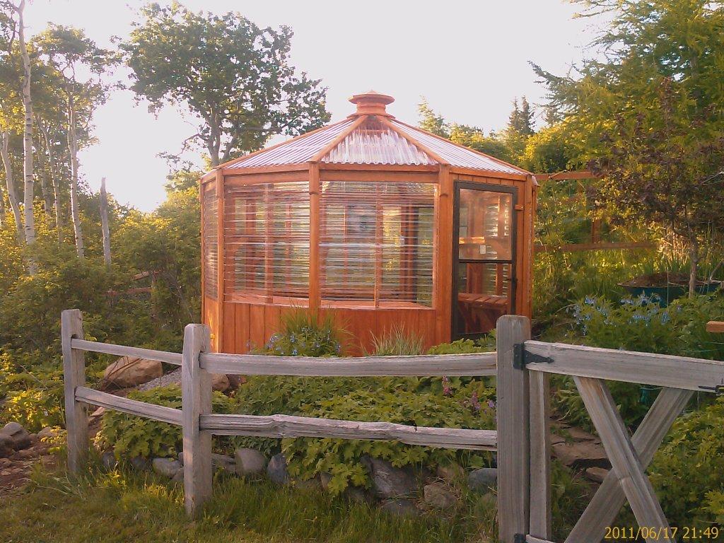 A sturdy, great looking, gazebo shaped greenhouse assembled onsite.