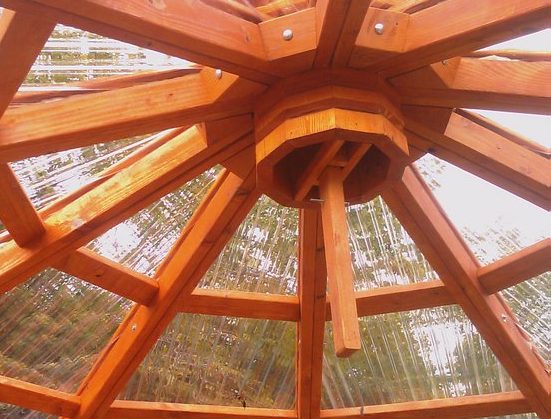 A sturdy, great looking, gazebo shaped greenhouse assembled onsite.