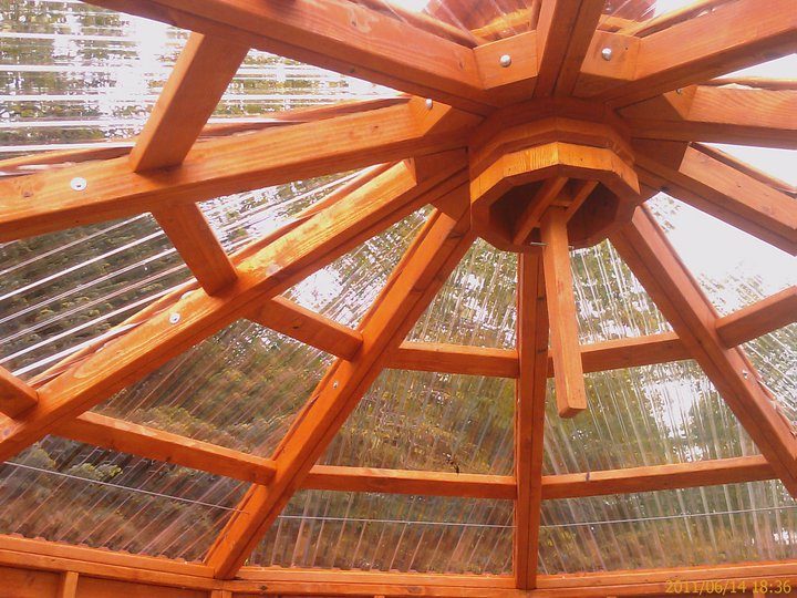 A sturdy, great looking, gazebo shaped greenhouse assembled onsite.